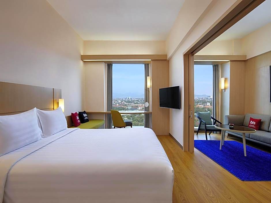Modern room fitted with a flat-screen cable TV, tea/coffee-making facilities and a personal safe. A fridge and a hairdryer are also included.